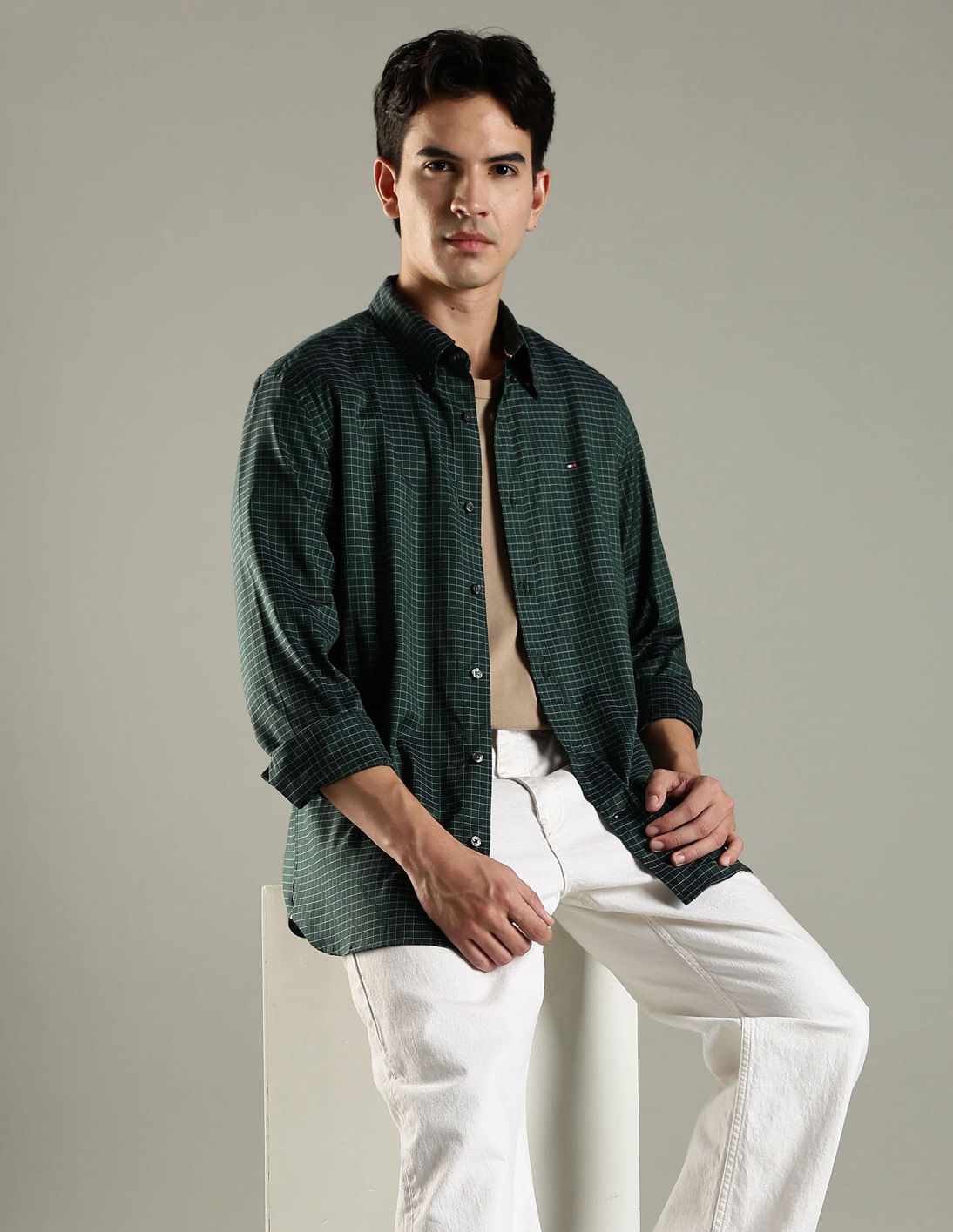 Windowpane Checked Regular Fit Cotton Shirt