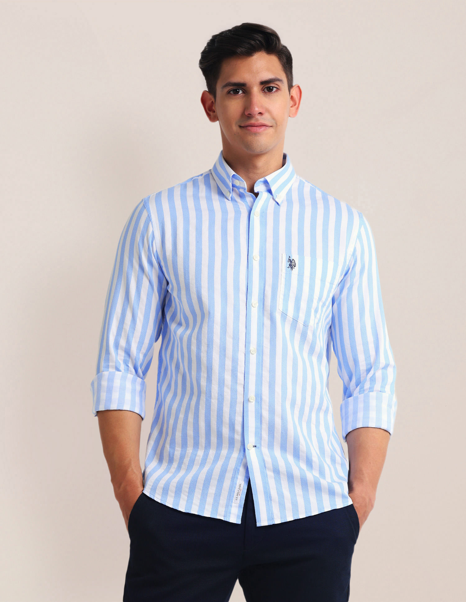 Button Down Collar Striped Shirt