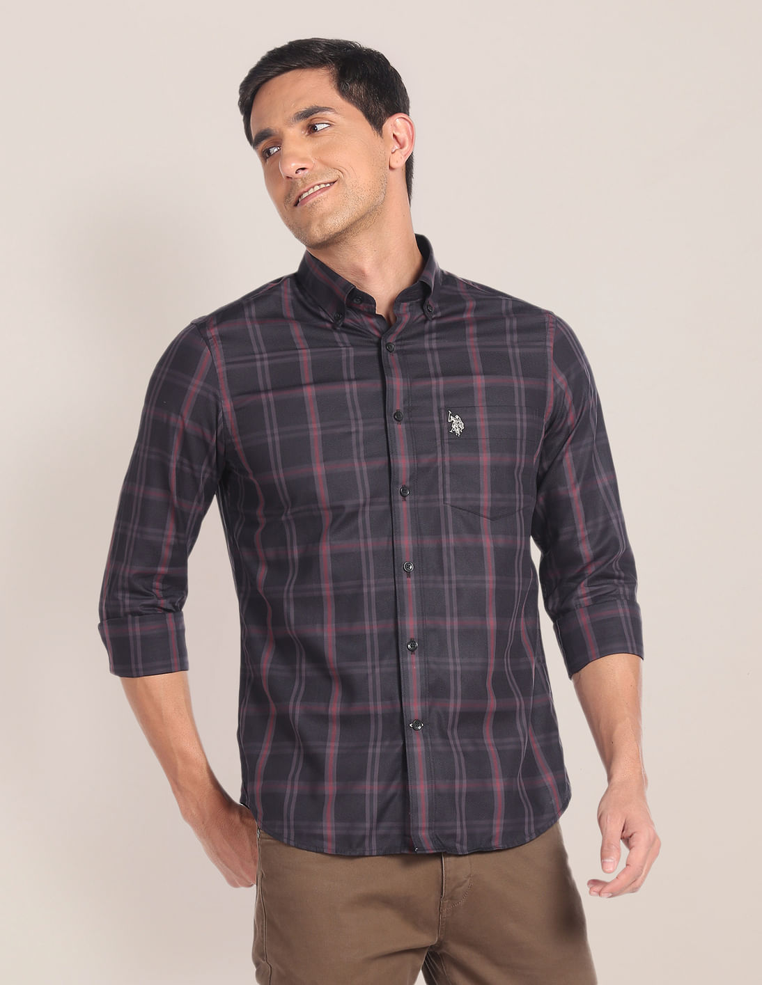 Button Down Collar Tartan Check Shirt