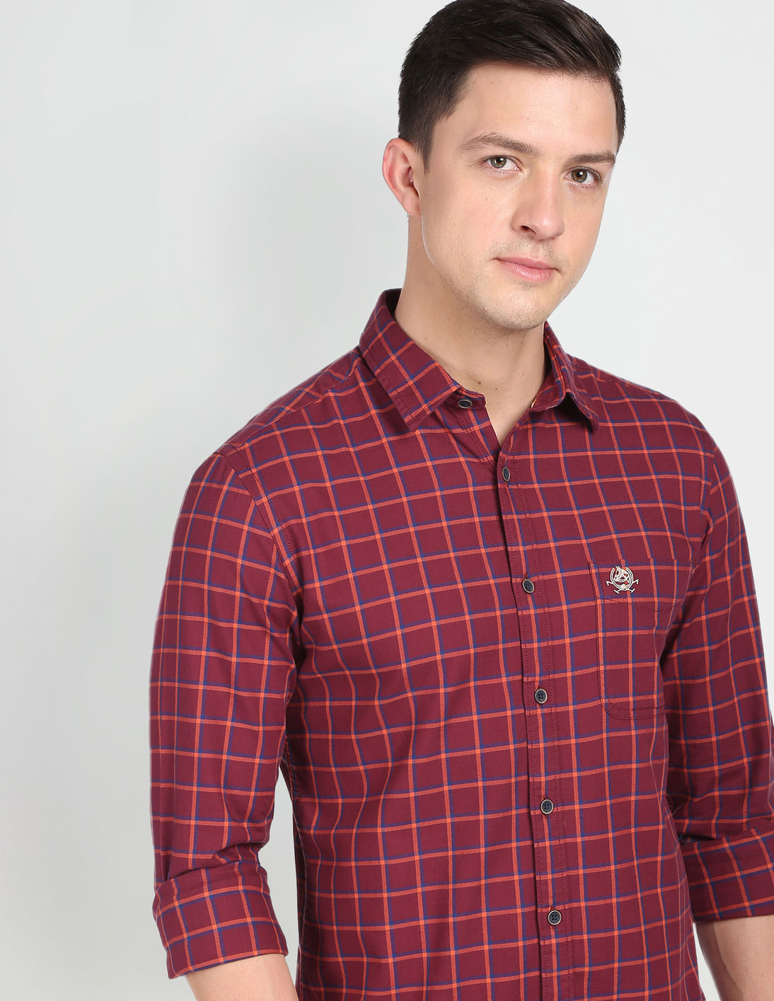 Windowpane Check Cotton Casual Shirt