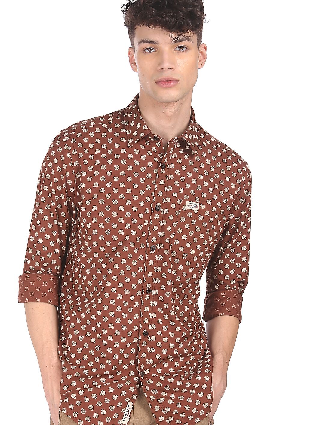 Spread Collar Printed Casual Shirt