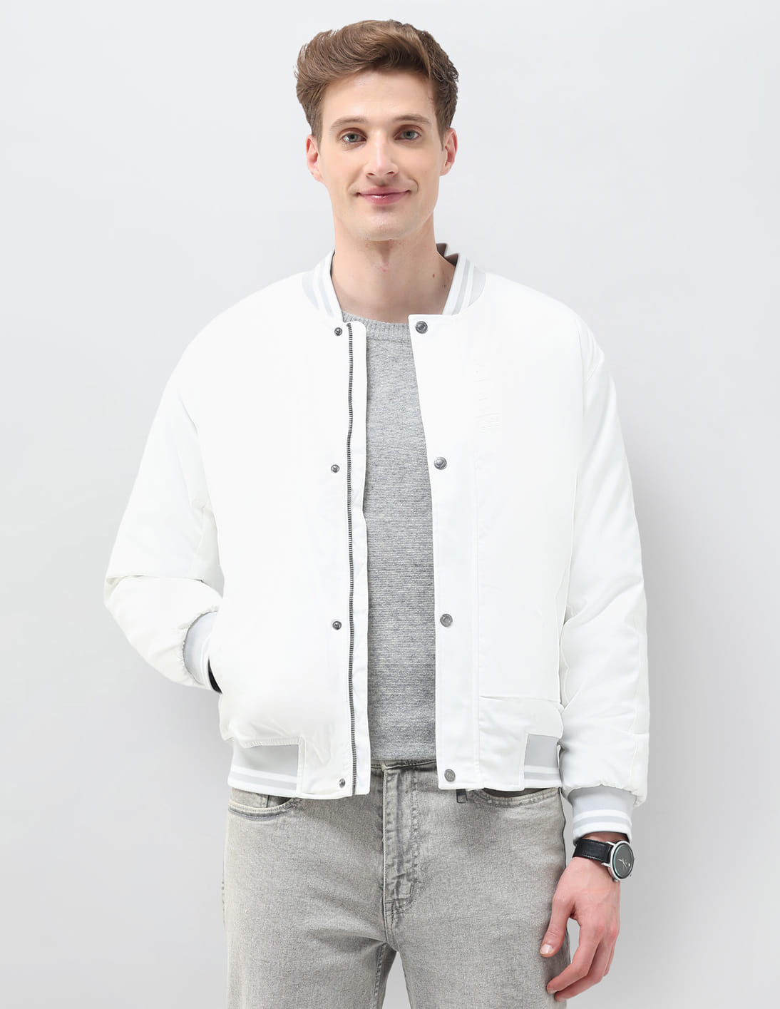 Solid Regular Fit Bomber Jacket