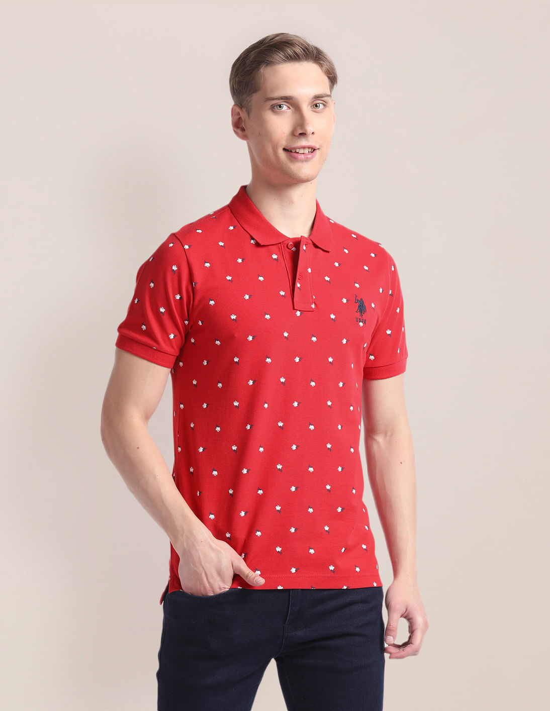 Floral Print Slim Fit Polo Shirt