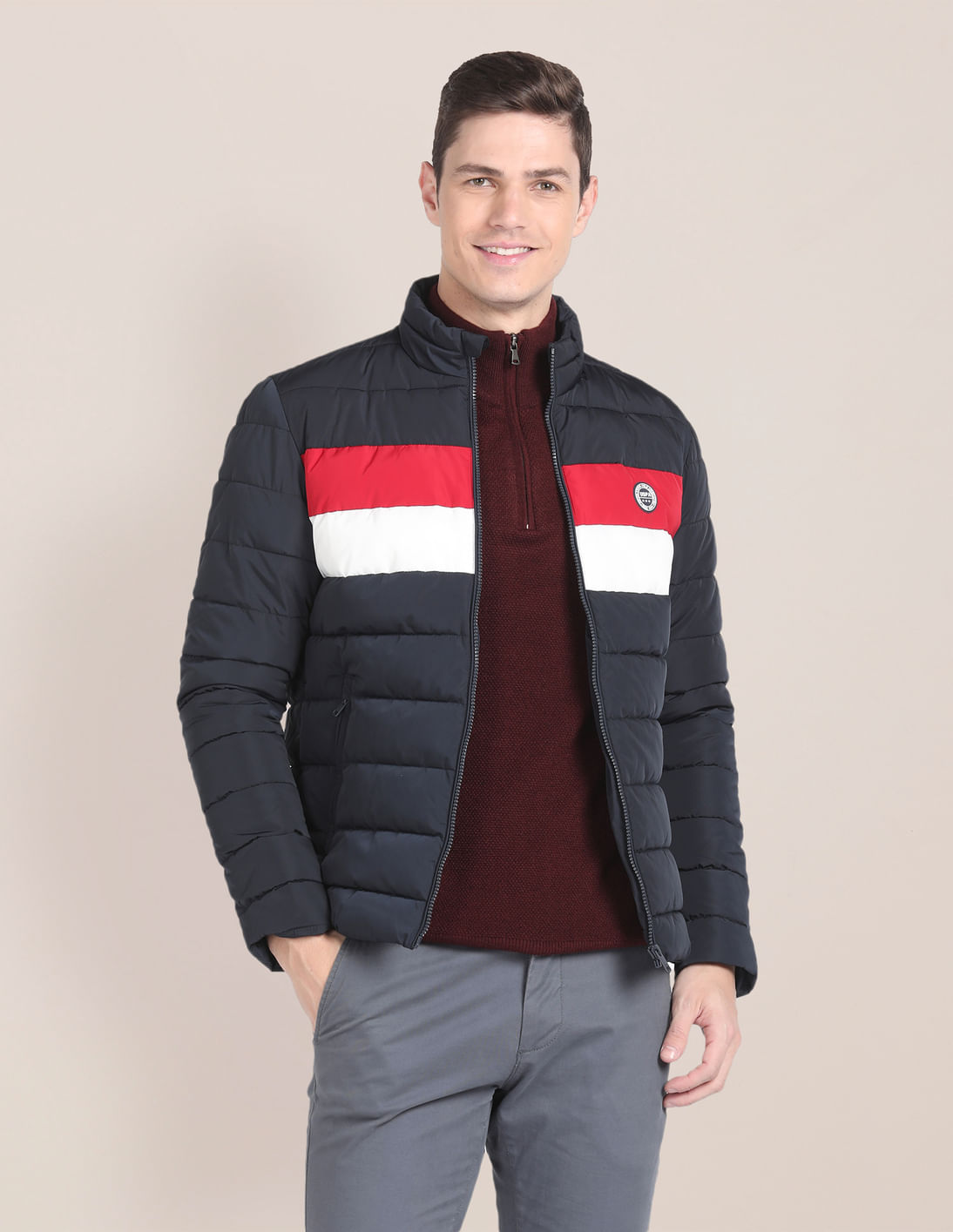 High Neck Colour Block Jacket