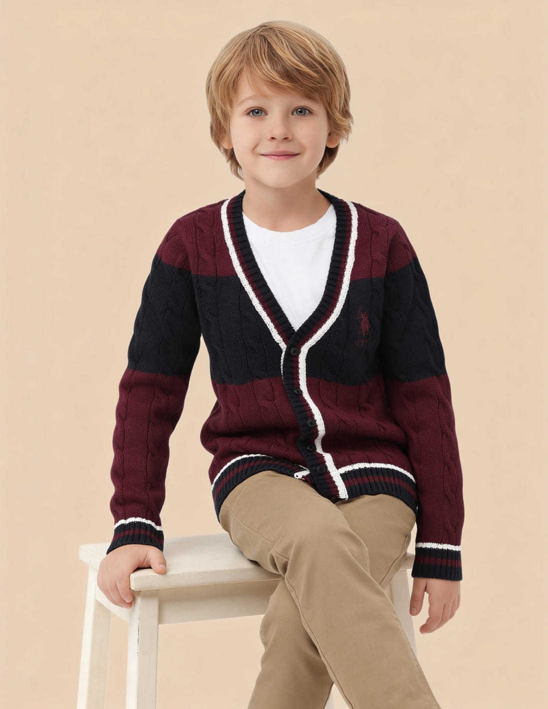 Boys Cable Knit Colorblocked Regular Fit Sweater