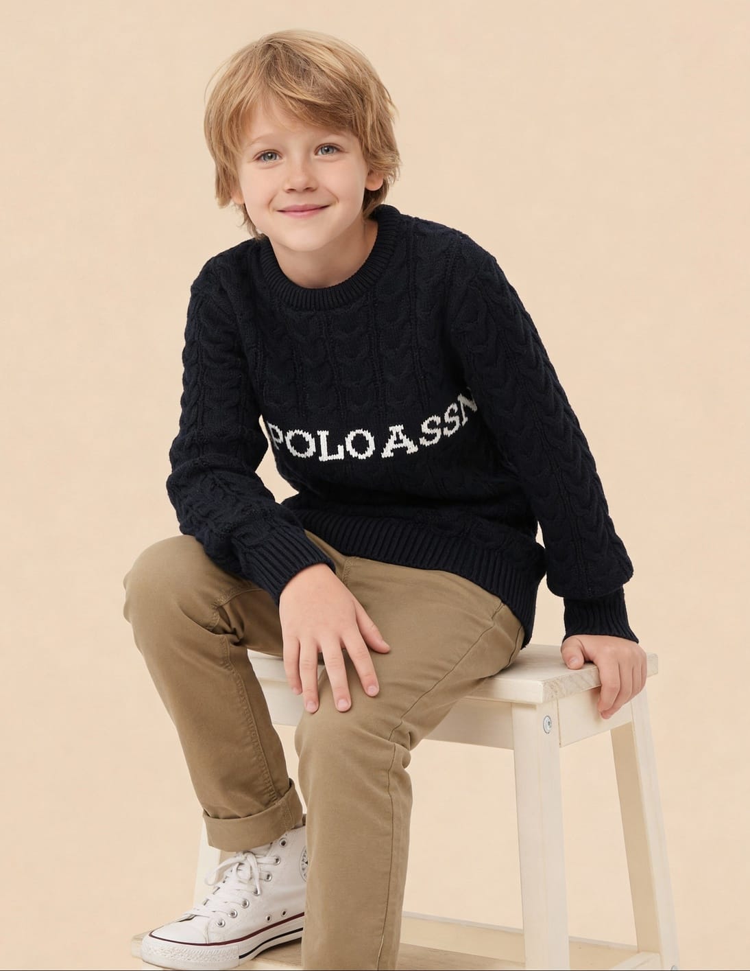 Boys Cable Knit Logo Regular Fit Sweater
