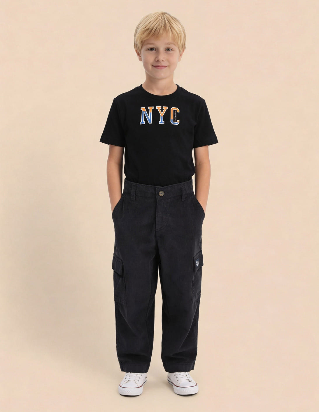 Boys Corduroy Relaxed Fit Cargo Trousers
