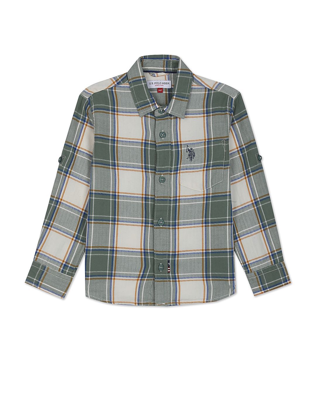 Boys Herringbone Weave Cotton Plaid Check Shirt