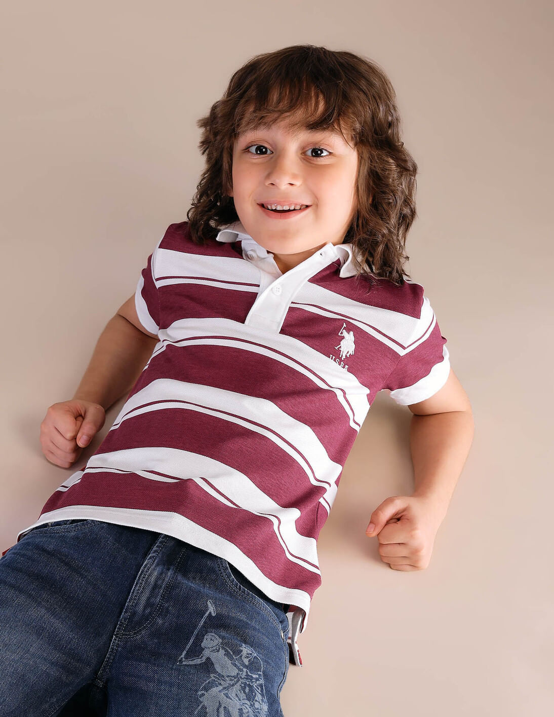 Boys Horizontal Striped Pure Cotton Polo Shirt