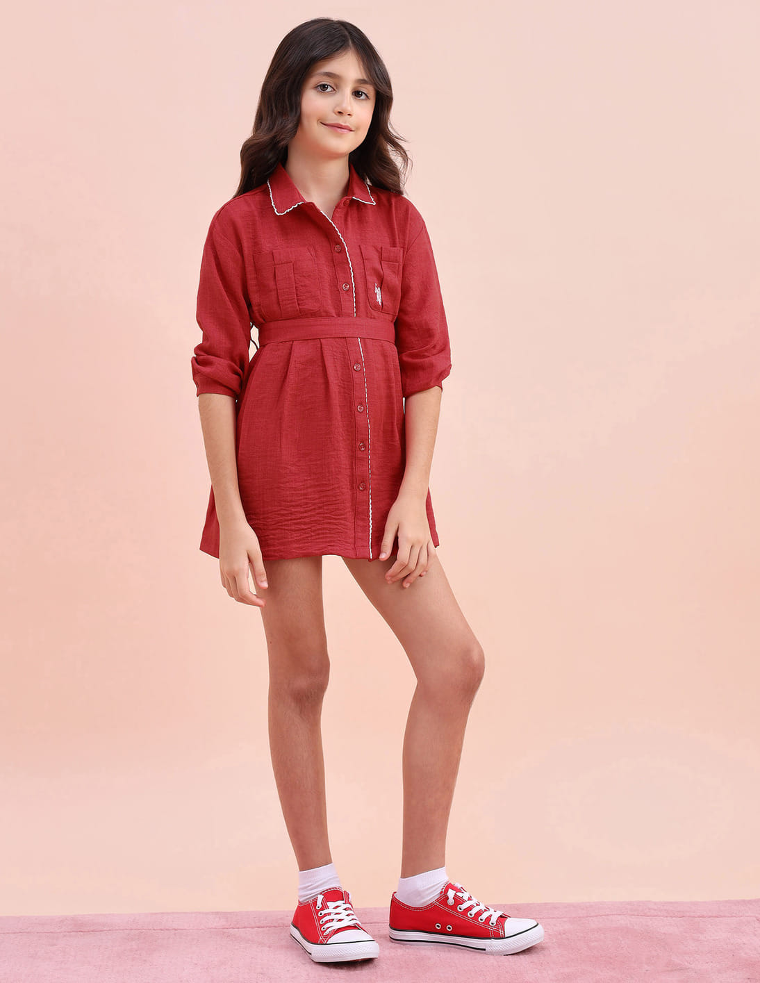 Girls Solid Shirt Dress
