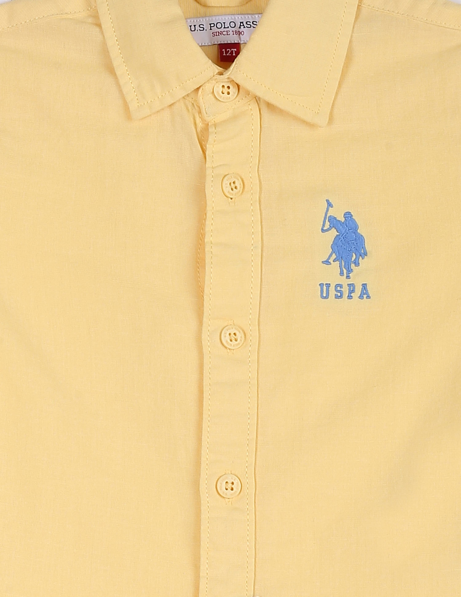 Boys Embroidered Logo Solid Shirt