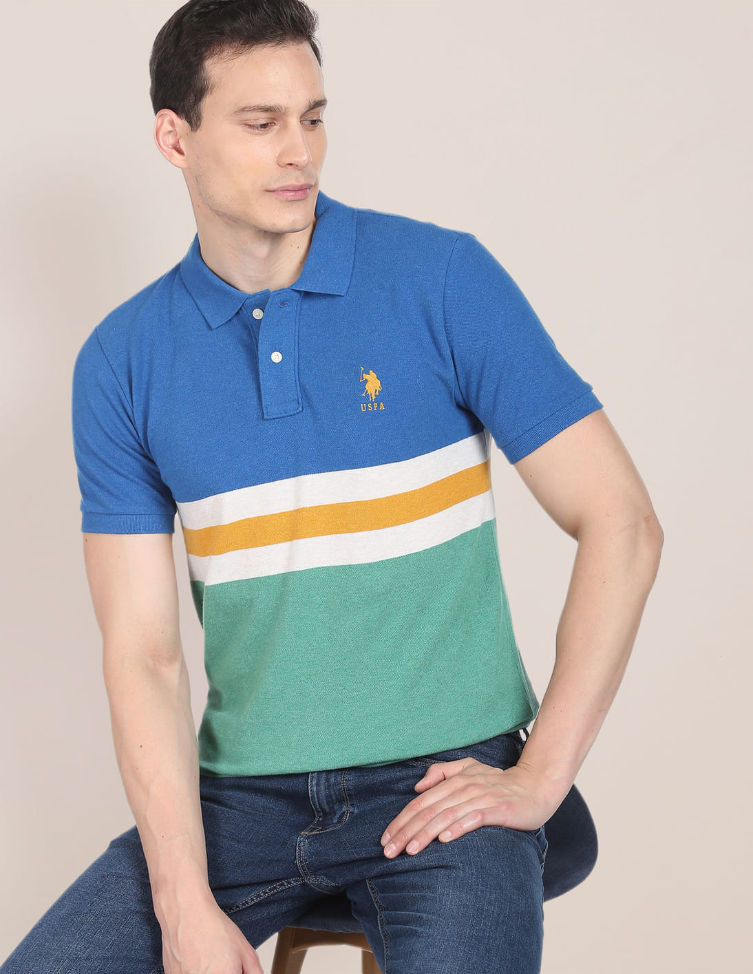 Colour Block Cotton Polo Shirt
