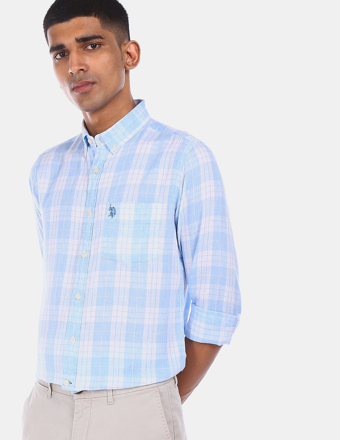 Button Down Collar Check Casual Shirt