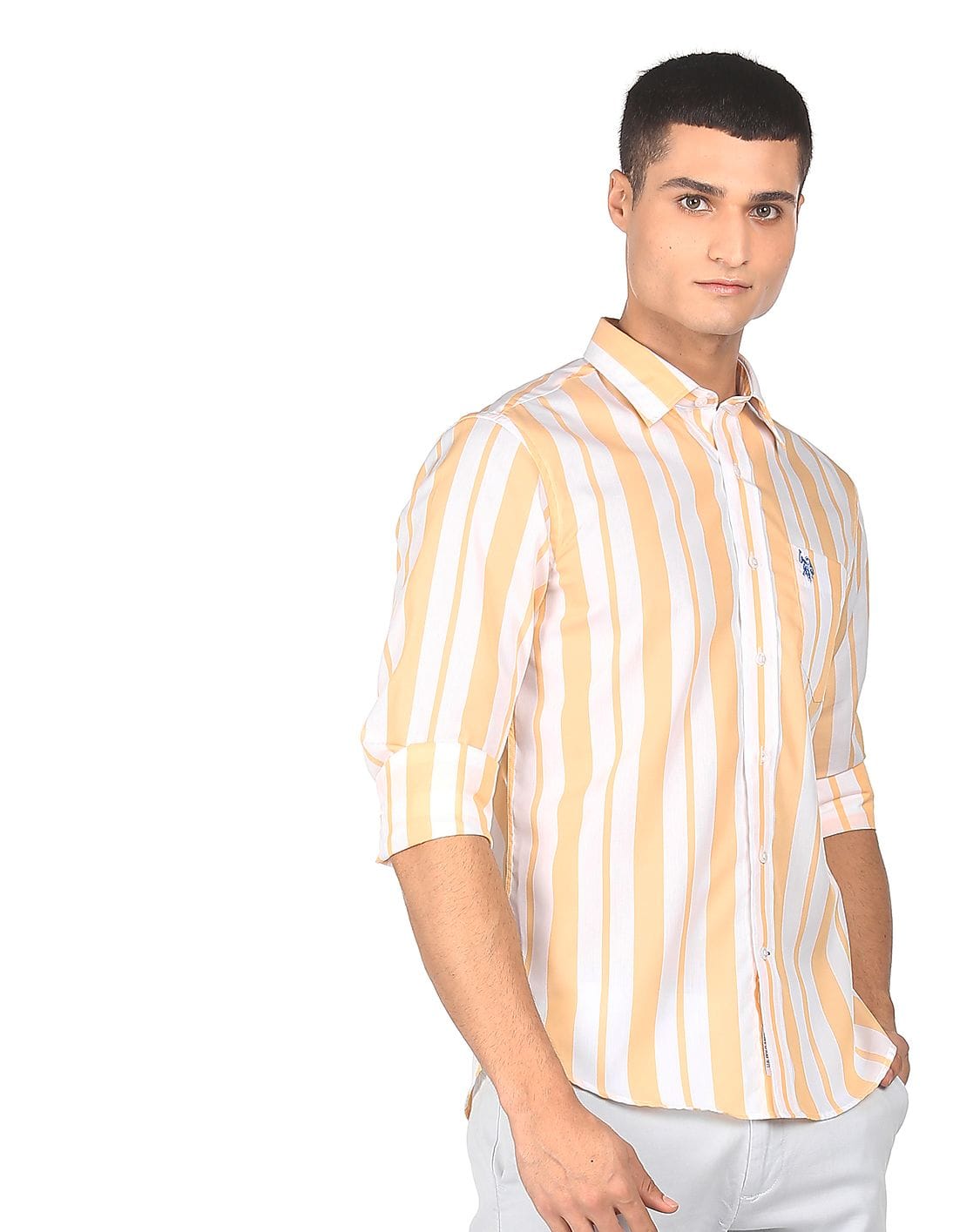 Spread Collar Striped Casual Shirt