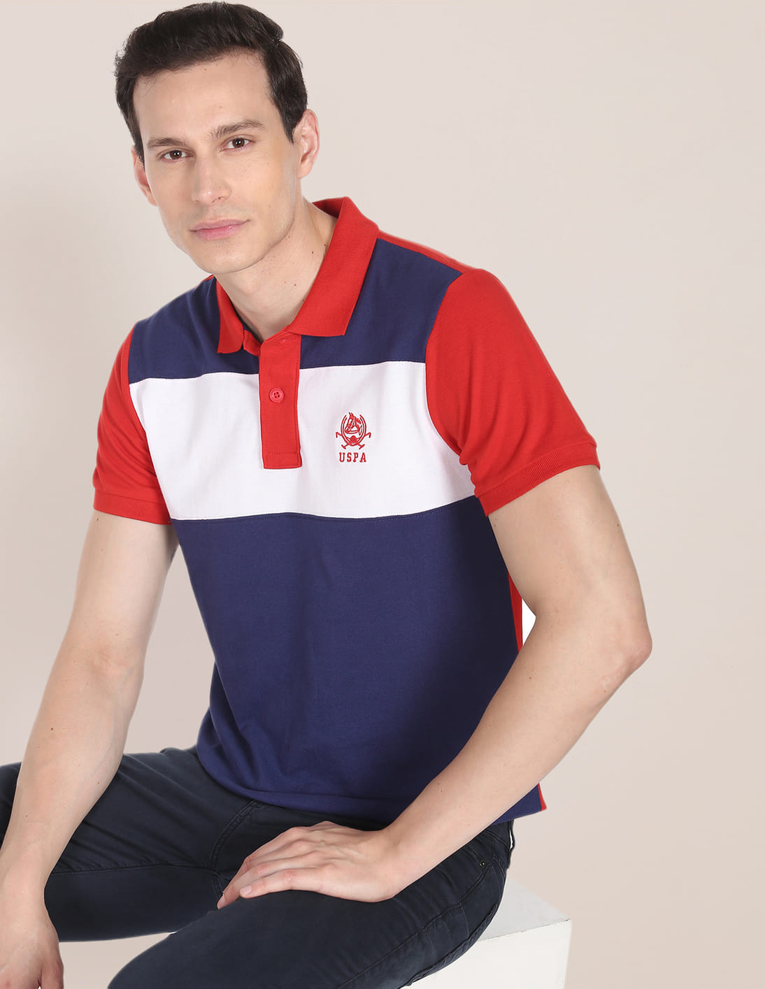 Colour Block Cotton Polo Shirt