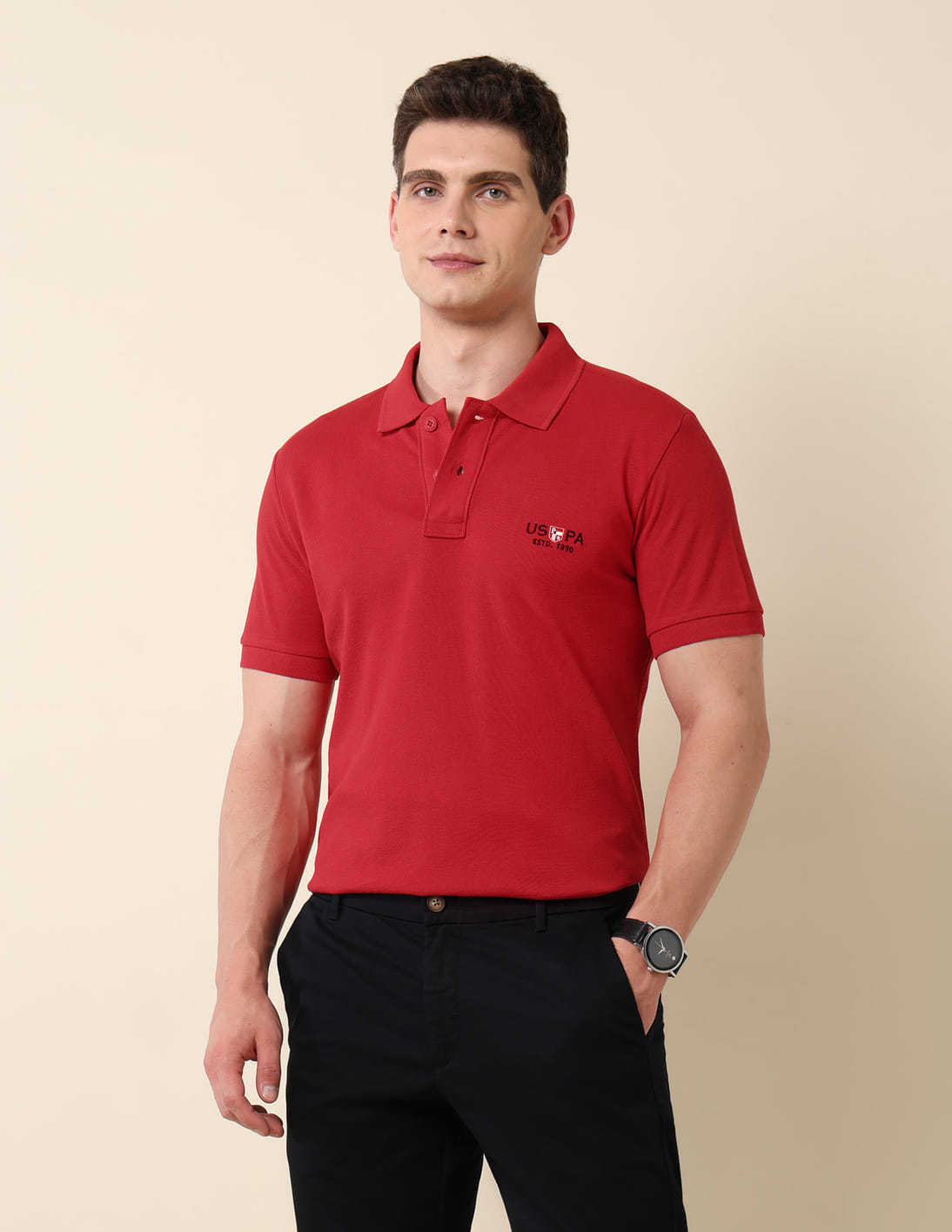 Red Solid Pique Polo Shirt
