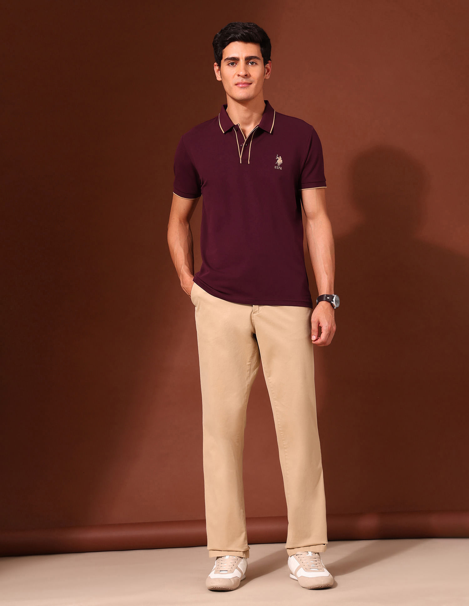 Solid Slim Fit Varsity Polo Shirt