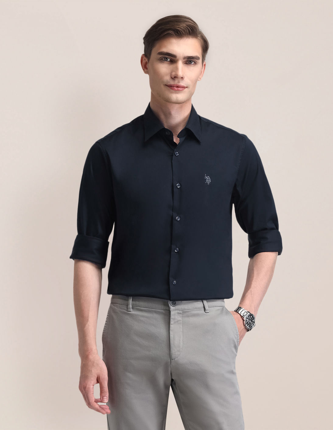 Tailored Fit Solid Twill Shirt